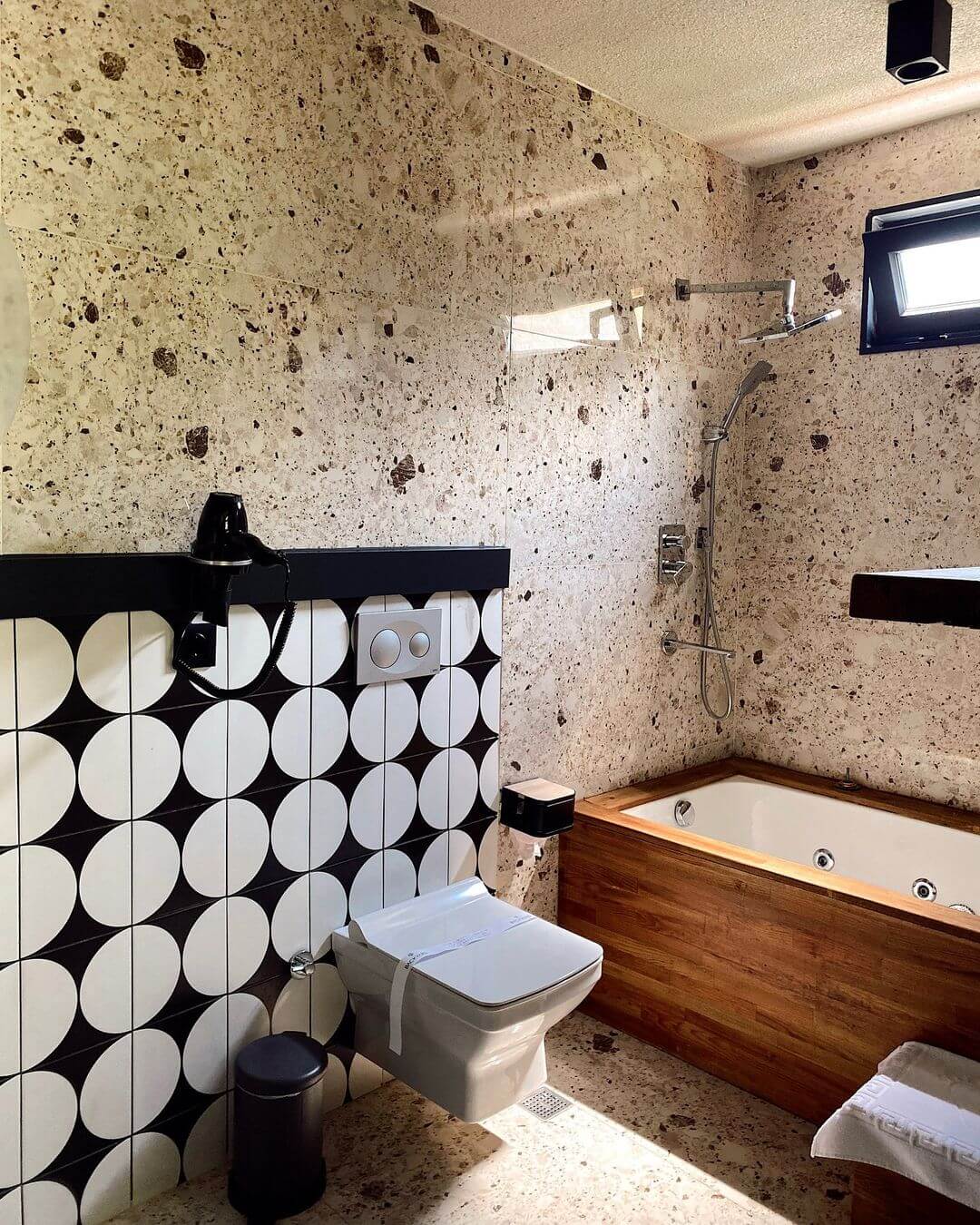 Banyoda yorgunluğunuzu alacak bir jakuzi de mevcut. Evlerin Isıtması ve sıcak suyu elektrikli kombilerle sağlanıyor, sıcak yaz günleri için ise klima var.