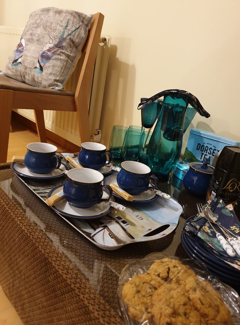 Keith and Jane, the owners of Swallows Rest, were lovely and very welcoming. Chocolates and home made cakes, tea and coffee were waiting for us in our suite on Denby and Wedgewood china collections. Egyptian cotton bedding and towels and luxurious shower gels and hair products were used in the room and bathroom. Original artwork by Roger Smith of Jurassic Coast Gallery were displayed throughout the property.