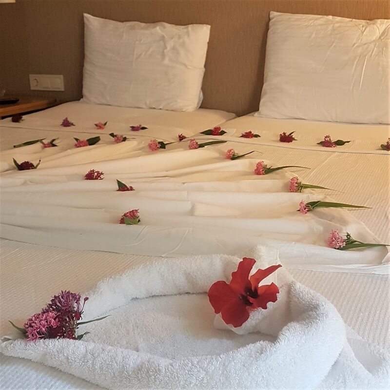 Oldukça kompakt bir yapıya sahip otelde odanızdan restorana, restorandan havuza, havuzdan denize kısa sürede ulaşmak mümkün. Otelin mavi bayraklı plajında, hem kumsalda hem de geniş iskelesinde en yoğun sezonda dahi tüm misafirlere yetecek kadar şezlong mevcut. Küçük çocuklu aileler kumsalı tercih ederken, bizim çocuklar ve akranları iskeleden atlamaya bayılıyor.