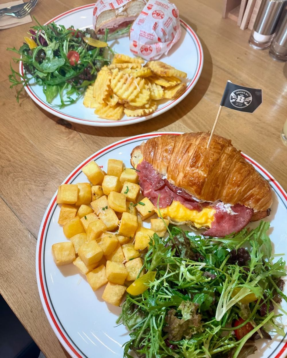 House of B kahvaltısı Suadiye şubesinde sadece hafta sonları 09:30-13:30 arasında servis ediliyor. Üstelik herhangi bir kahvaltı tabağı sipariş edene filtre kahve hediye ediliyor. Avokadolu’dan Peperonili’sine 6 farklı bagel çeşidi; yanında rakula salatası ve kendi yapımları kafes patates kızartması ile, Waffle & Egg ve Kruvasan Sandviç çeşitlerinin de olduğu 6 farklı kahvaltı tabağı da yine rakula salatası ve ev yapımı küp patates kızartması ile servis ediliyor. Menünün bir de göz alıcı tatlısı var, “Maple & Nutella Pancake” yanında şırıngada özel akçaağaç şurubu ile sunuluyor.