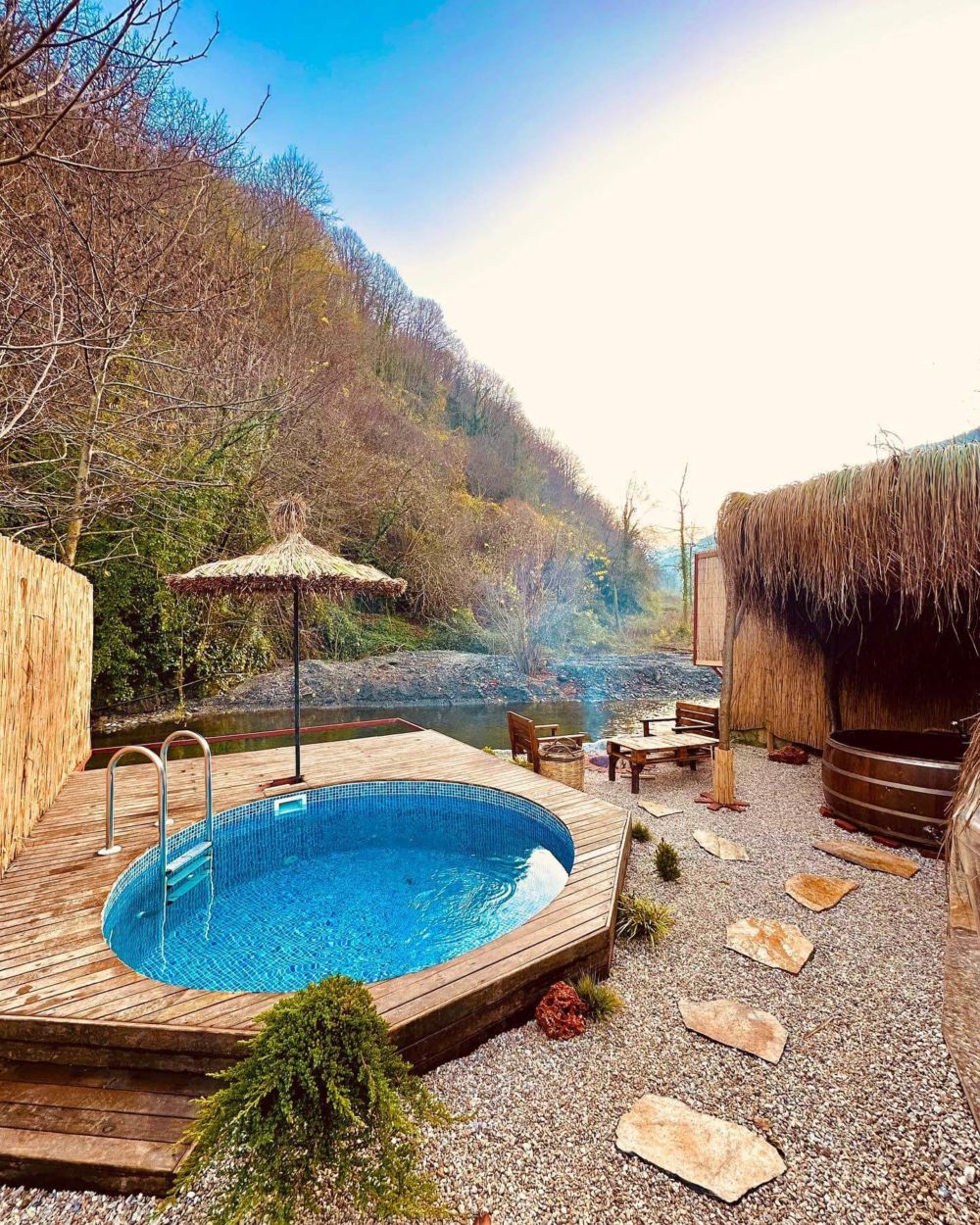 Her biri dere kenarında konumlandırılmış 8 adet dome çadırdan oluşan Sapanca River’ın hem iç mekan hem de bahçe tasarımı insanda Bali’de tatil yapıyormuş hissi yaratıyor. Dome yani kubbe çadır olarak tasarlanmış konaklama birimlerinin hepsinin kendine özel bahçesi, ısıtmalı havuzu ve fıçı formunda soğuk su küveti bulunuyor. Kahvaltı dahil hizmet veren tesiste dere sesi eşliğinde uykuya dalmak çok keyifli oluyor.