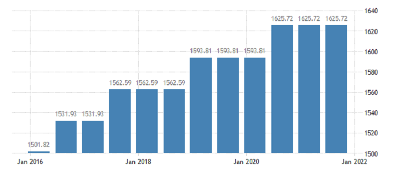 Belçika’da asgari ücret diğer pek çok Avrupa Birliği ülkesinin aksine saatlik olarak değil, aynı Türkiye’de olduğu gibi aylık olarak belirleniyor. 2016 yılında aylık 1500 Euro olarak belirlenmiş asgari ücret 2020 yılında 1625 Euro’ya yükseltilmiş.