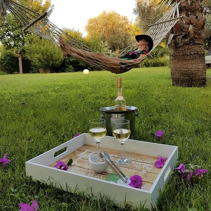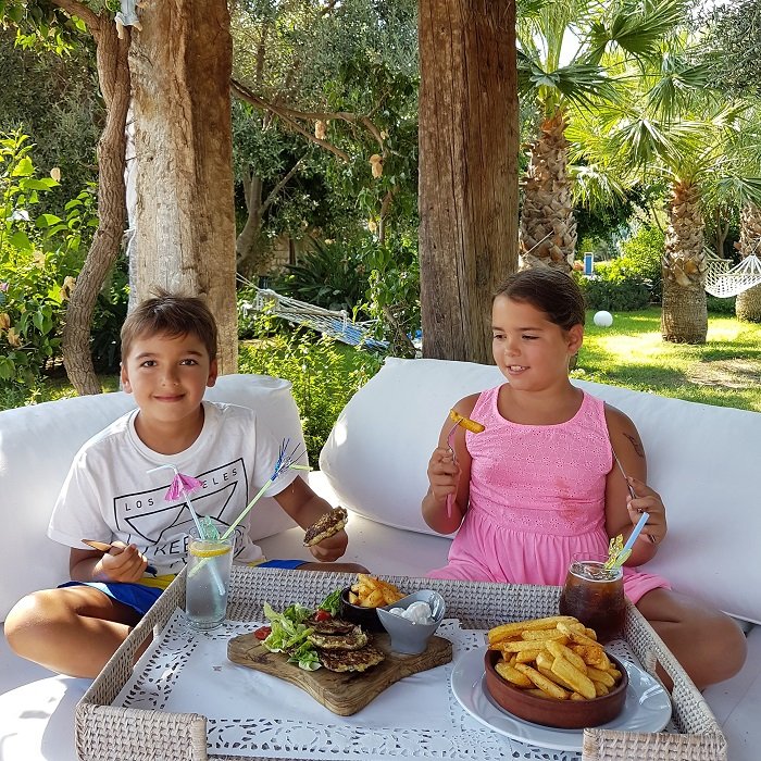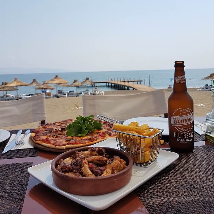 Flow Datça’da öğle ve akşam yemekleri alakart olarak servis ediliyor. Çocuklar yoğurtlu mücver ve kızarmış patates ikilisine bayılıyor. Büyükleri ise plajdaki kafe bardaki pizza ve bira ikilisi cezbediyor. Formunu korumaya çalışan bazı bayanlar ise havuz başında karpuzu tercih ediyor. Hele otelin çeşit çeşit ağaç ve çiçeklerle dolu bahçesindeki hamaklara serilip dömisek bir beyaz şarap ve datça bademi ikilisi ile buluşunca insanın ‘Yaşasın tatil’ diye bağırası geliyor.