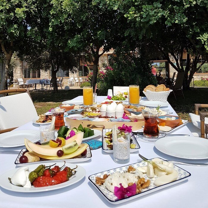 Flow Datça’da sabahlar çeşit çeşit yöresel peynirli ve zeytinli, krepli, kruvasanlı, simitli, biber kızartmalı çok zengin bir açık büfe ile başlıyor, şef hazırladığı özel detoks içeçekleri kahvaltı sonrası herkese ikram ediyor. Kahvaltı sonrası deniz severler plaja, havuz severler havuz başına yerleşiyor. Otel oldukça geniş bir alana yayılmış olduğu için hem plaj hem de havuz başı oldukça sakin, Flow Datça huzurlu ve dingin bir tatil arayışında olanların bu anlamda tüm beklentilerini karşılıyor.