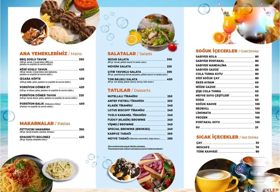 Kafenin 2025 yazı güncel menüsü şu şekilde;