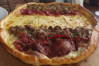 Ezine peyniri, Kars eski kaşarı, dil peyniri, çeçil peyniri, labne peyniri, antrikot füme, zeytin, bal, tereyağı, şeker ilavesiz vişne reçeli, kiraz domates, salatalık, renkli Kaliforniya biberleri, arugula, maydanoz, kuru kayısı, karabuğdaylı ve kuruyemişli fit gevrek, taze meyveler ve 2 bardak çaydan oluşan iki kişilik Kahvaltı Tahtası toplam 1150 TL karşılığında sunuluyor.