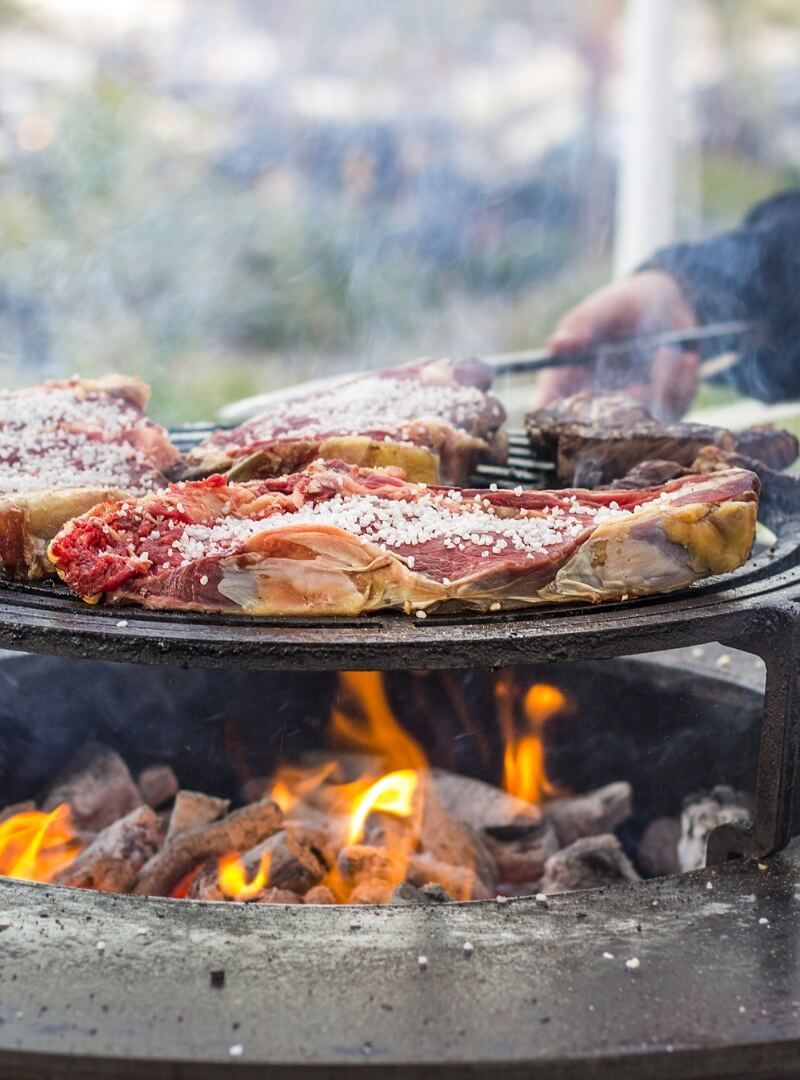 The meats are cooked, as is traditional, in the purest Basque style on a specially designed grill.