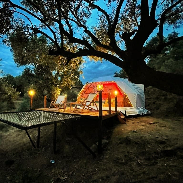 Doğanın içinde, farklı ve lüks bir inziva deneyimini size sunacak olan Küçük Menderes ovası manzaralı Hayal ve Aşk Evi 20 m2 yaşam alanı, kendine ait 15 m2 verandası ve verandasının önünde sonsuzluk hamak yatağı ile sıra dışı bir glamping deneyimi yaşatıyor.