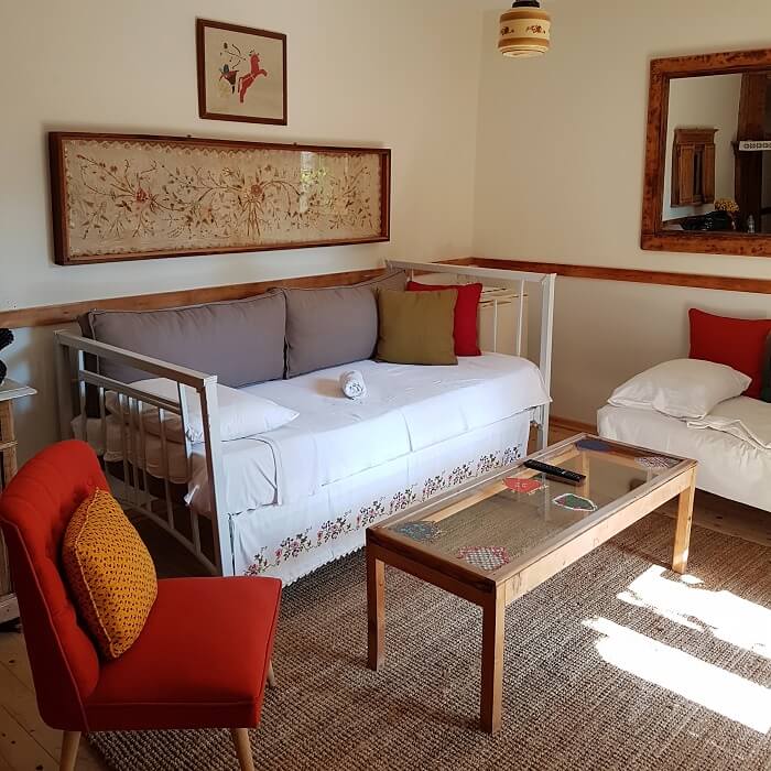 Bizim 2 büyük 2 çocuk olarak konakladığımız Bahçe Suit’inin yeşillikler içinde kendine özel balkonu, çift kişilik yataklı odası ve iki ayrı yatağa dönüştürülebilen oturma grubuna sahip bir oturma odası bulunuyor. Fidanka Kalkan’da ruhu olan bir butik otel arayanlar için çok iyi bir seçenek oluşturuyor.