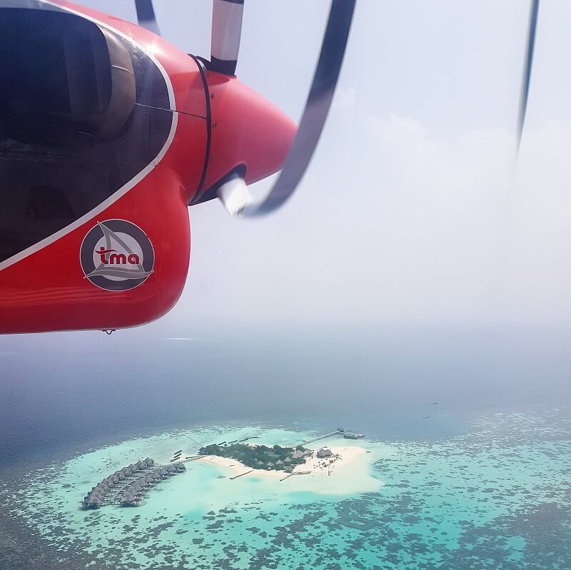 Deniz uçakları tarifeli olmasına rağmen servis gibi içindeki yaklaşık 10-15 yolcuyu resort otellerinin bulunduğu adaya tek tek bırakıyor. Her adadan günde ortalama 3 uçuş var. Uçuş saatiniz bir gün öncesinde belli oluyor. Fotoğrafta bindiğimiz deniz uçağından konakladığımız otel ada Drift Retreat görünüyor.⠀