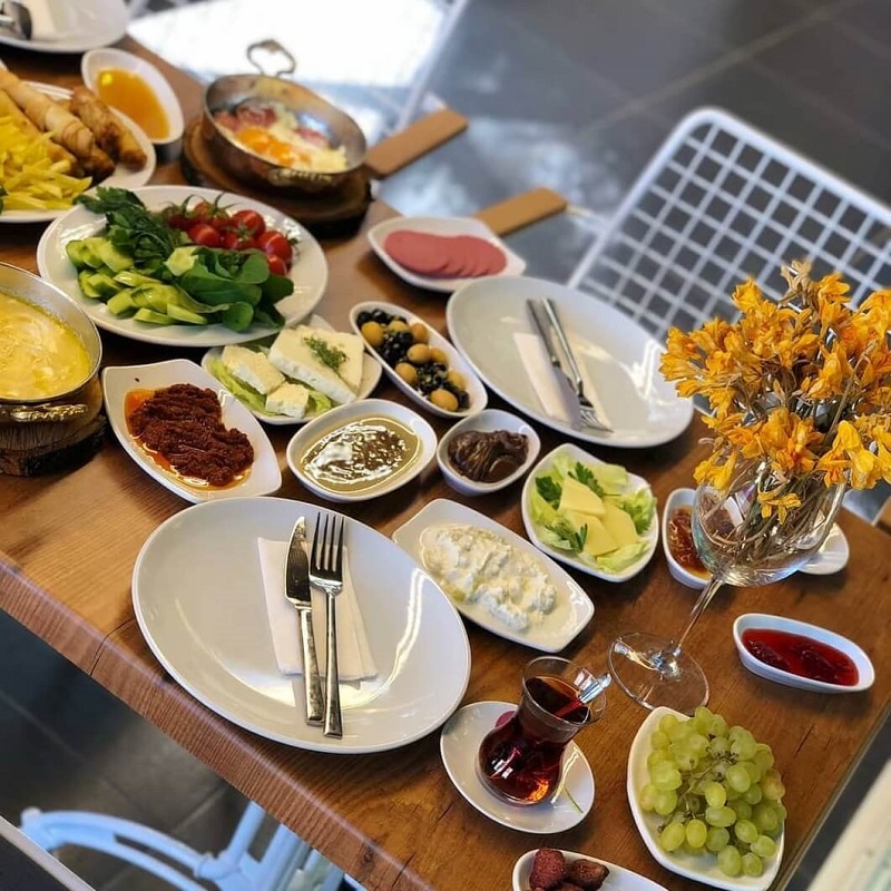 İbrahim Ağa Konağı’na sadece kahvaltı için gelmeniz de mümkün. Serpme kahvaltıda peynir tabağı, söğüş tabağı, közde biber patlıcan tabağı, acıka, reçel çeşitleri, bal- tereyağ, pekmez, zeytin çeşitleri, sigara böreği, patates kızartması, pili, mıhlama, sucuklu yumurta, meyve ve sınırsız çay bulunuyor. Çoğunun ev yapımı ürünlerden oluştuğu serpme kahvaltı kişi başı 160 TL karşılığında sunuluyor.