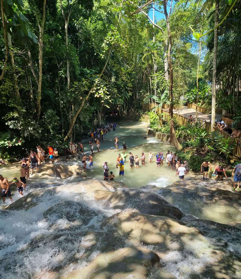 Ayrıca bir de aklımıza kazınan “Yaman“ kelimesi var, Yes / OK anlamında kullanılıyor. Bir yerden sonra size sorulan her şeye müzikal bir şekilde “Yaman” demeye başladığınızı fark edebilirsiniz.😊 Ocho Rios’da en favori aktivite Duns River Fall şelalelerine tırmanış. Denizden başlayarak yukarı doğru yaklaşık 1 saat süren tırmanış orta güçlükte. Ancak burada tecrübeli rehberler ile keyifli bir kaya tırmanışı ve şelalenin zaman zaman göğsünüze kadar gelen sularda serinlemek için güzel bir parkur. Yol ve fotoğraflar ile yaklaşık 2-3 saatlik bir tur sonrasında limana yakın Ocho Rios Beach‘te 2 saat deniz keyfi ile günü tamamladık . Burada plaj girişi kişi başı 3 USD , sezlong 5 USD.