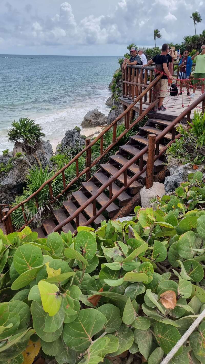 Playa Del Carmen‘den 1 saatlik otobüs yolculuğu ile Tulum‘a ulaştık. Burada durağımız Tulum Harabeleri. Tulum harabeleri Mayaların liman şehrine ait harabeler. Tüm Maya şehirleri bir amaç üzerine kurulmuş olup, Tulum (anlamı Sur) şehri de liman olarak kurulmuş ve surlarla çevrili olduğundan en iyi korunmuş Maya şehirlerinden biri. Surları 784 metre uzunluğunda , 7 metre kalınlığında ve ortalama 3-5 metre yüksekliğinde. Burada görülecek en önemli yapılar Castillo Piramidi ve Freskler Tapınağı. Resimlerini paylaştığım tahta merdivenlerden inerek Karayip denizine girmek de mümkün .