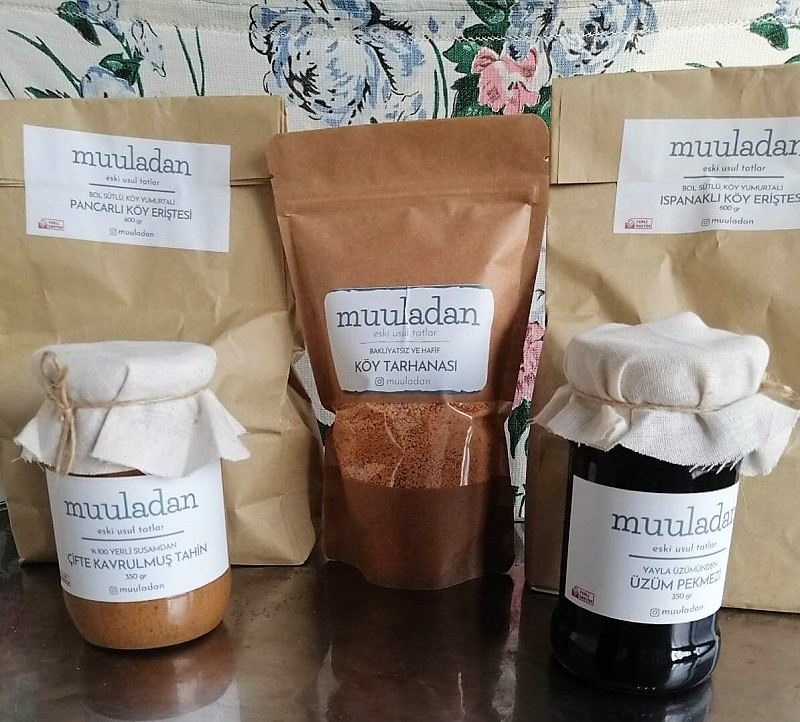 Muğlalı kadın üreticilerden eski usül tatlar mottosu ile kurulan MUULADAN lokal lezzetleri kapınıza kadar ulaştırıyor. Shopier’den online sipariş verebileceğiniz ürünlerinden bol yumurtalı ve mevsim sebzeli köy erişteleri, bakliyatsız, hafif ve ekşisiz köy tarhanası, meşhur Dalyan narından odun ateşinde kaynatarak elde edilen nar ekşisi, çifte kavrulmuş tahin, kuru incirler ve kantaron yağı, Çameli’ndeki direkt üreticiden alınan ince kabuklu ceviz ve kurutulmuş portakal ve mandalinaları özellikle seviliyor.