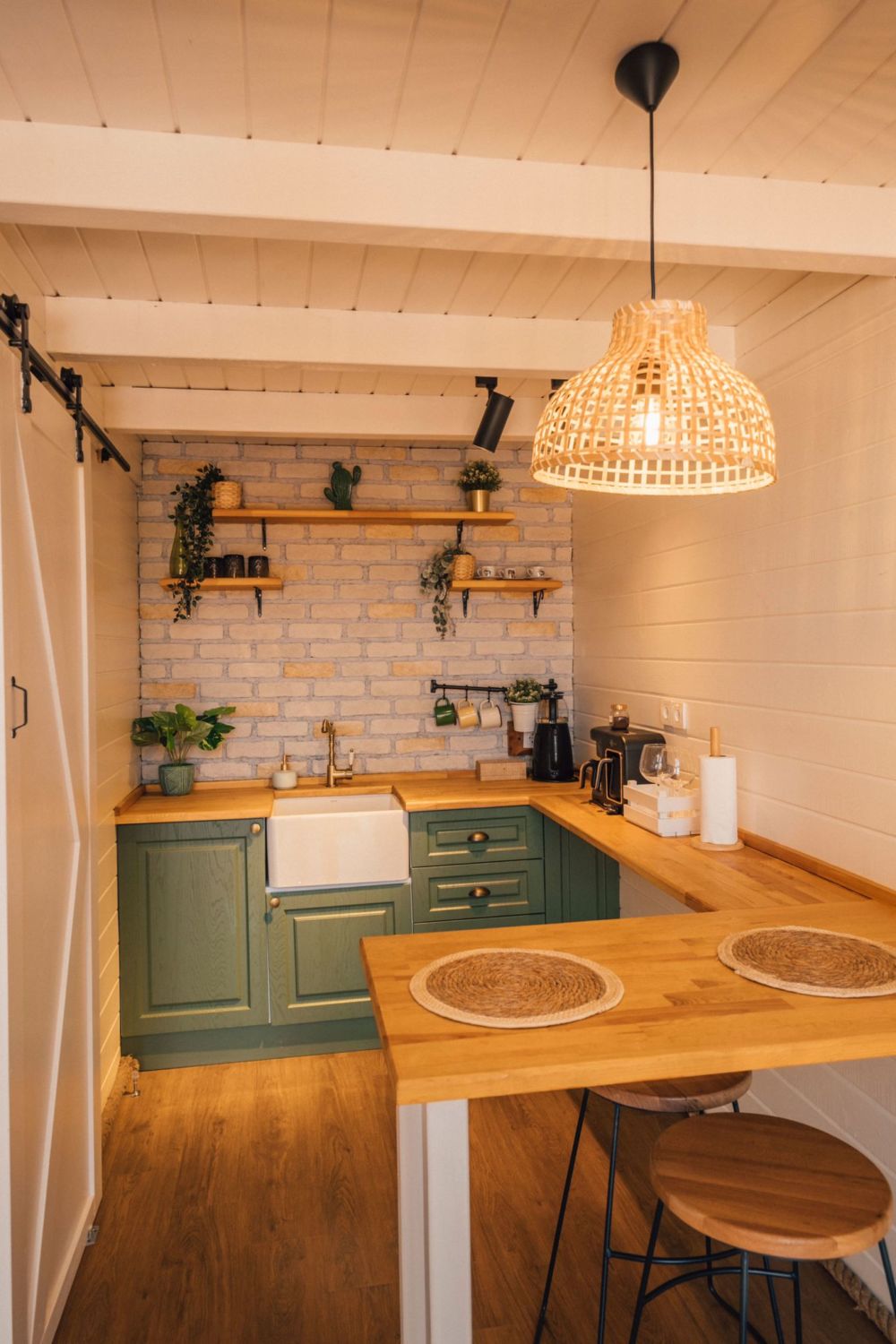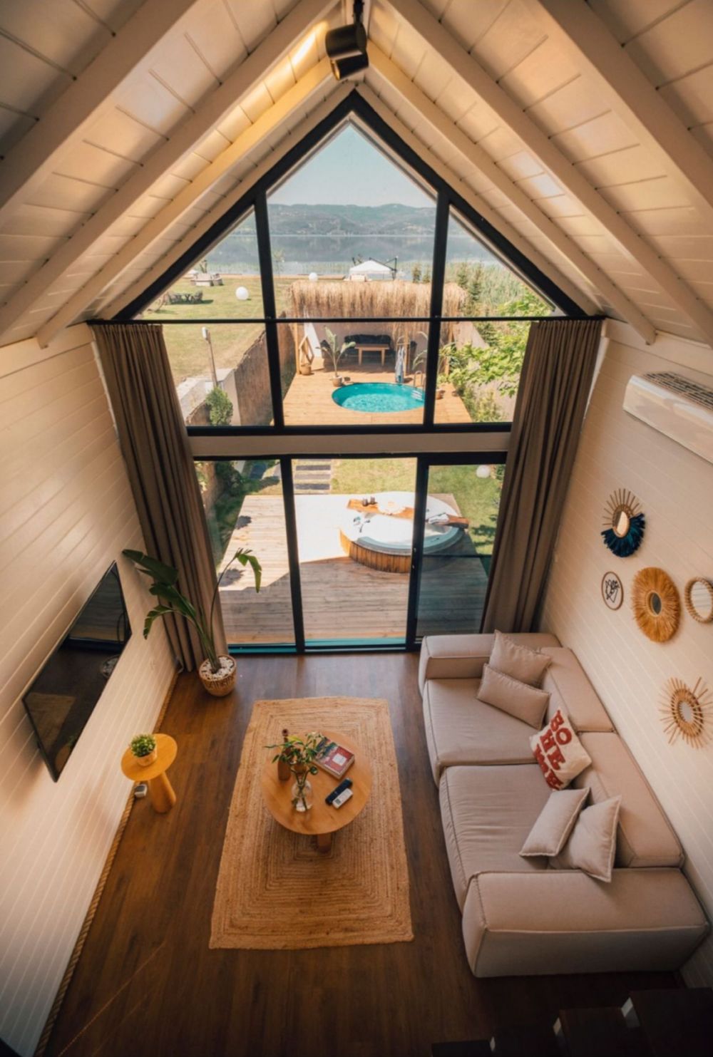 Her biri 2 katlı olan bungalov evlerin üst katında çift kişilik yatak, alt katta ise açılmayan ama geniş ve rahat bir koltuğu bulunuyor. Evin içerisinde televizyon, klima, mutfağında keyifle vakit geçirebileceğiniz ve atıştırmalıklar hazırlayabileceğiniz bir alan mevcut. Kahve severler için hem türk kahvesi hemde filtre kahve makinaları da var. Evlerin ısınması yerden ısıtma ve klima ile sağlanıyor. Havuz başında bulunan çardak kısmındaki konforlu oturma takımları tatile ekstra keyif katıyor.