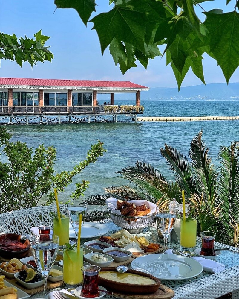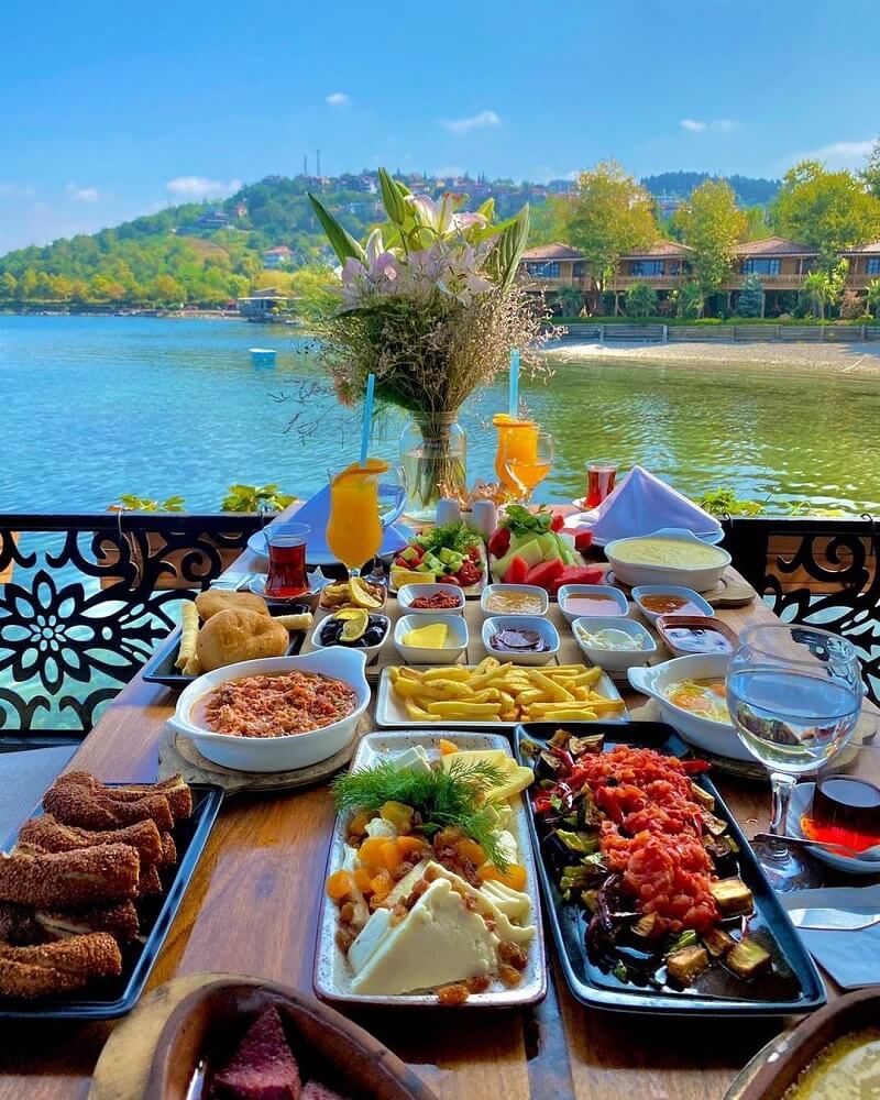 Mayıs 2025 güncel fiyatı kişi başı 770 TL olan serpme kahvaltıda beyaz peynir, köy peyniri, tel peynir, kaşar peyniri, siyah zeytin, yeşil zeytin, bal, kaymak, tereyağ, acuka, fındık ezmesi, çikolata ezmesi, 2 çeşit reçel, domates, salatalık , yoğurtlu biber kızartması, güveçte sucuk, peynir eritmesi, pişi, patates kızartması, sigara böreği, sahanda yumurta, simit, meyve tabağı, sınırsız çay ve su bulunuyor. Sasa serpme kahvaltısında güveçte sucuk, yoğurtlu biber kızartması ve peynir eritmesi özellikle seviliyor. Kahvaltı sonrası ördekler ile iç içe Türk kahvesi içmek çok keyifli oluyor.